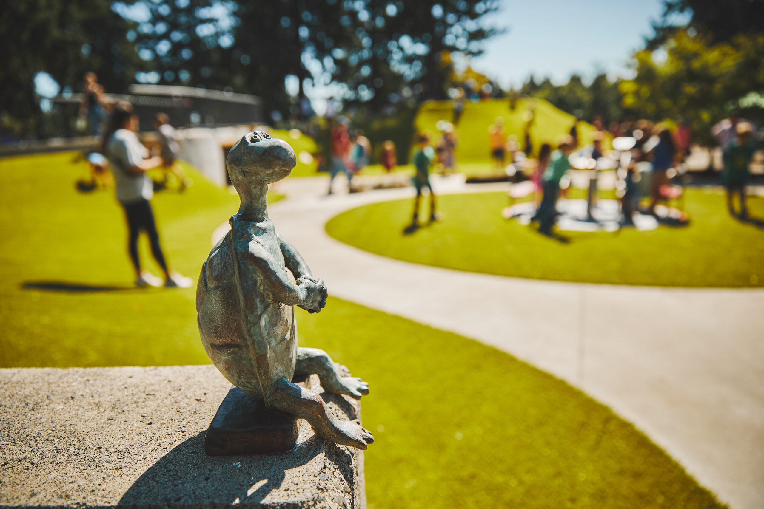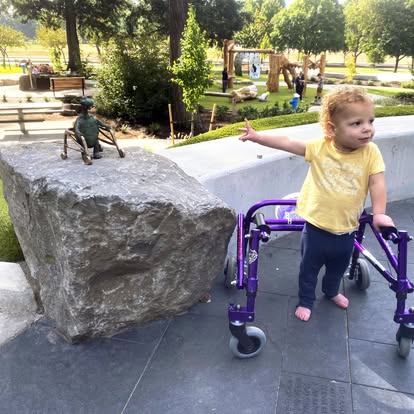 Yeah. We have this incredibly poignant photo of a child in a walker pointing at a turtle in a walker. And that turtle in the walker was inspired by Harper in her walker. (Janet: nice). So, I think storytelling, and even a tactile component can come through art. Bronze sculptures are one of the favorite elements.