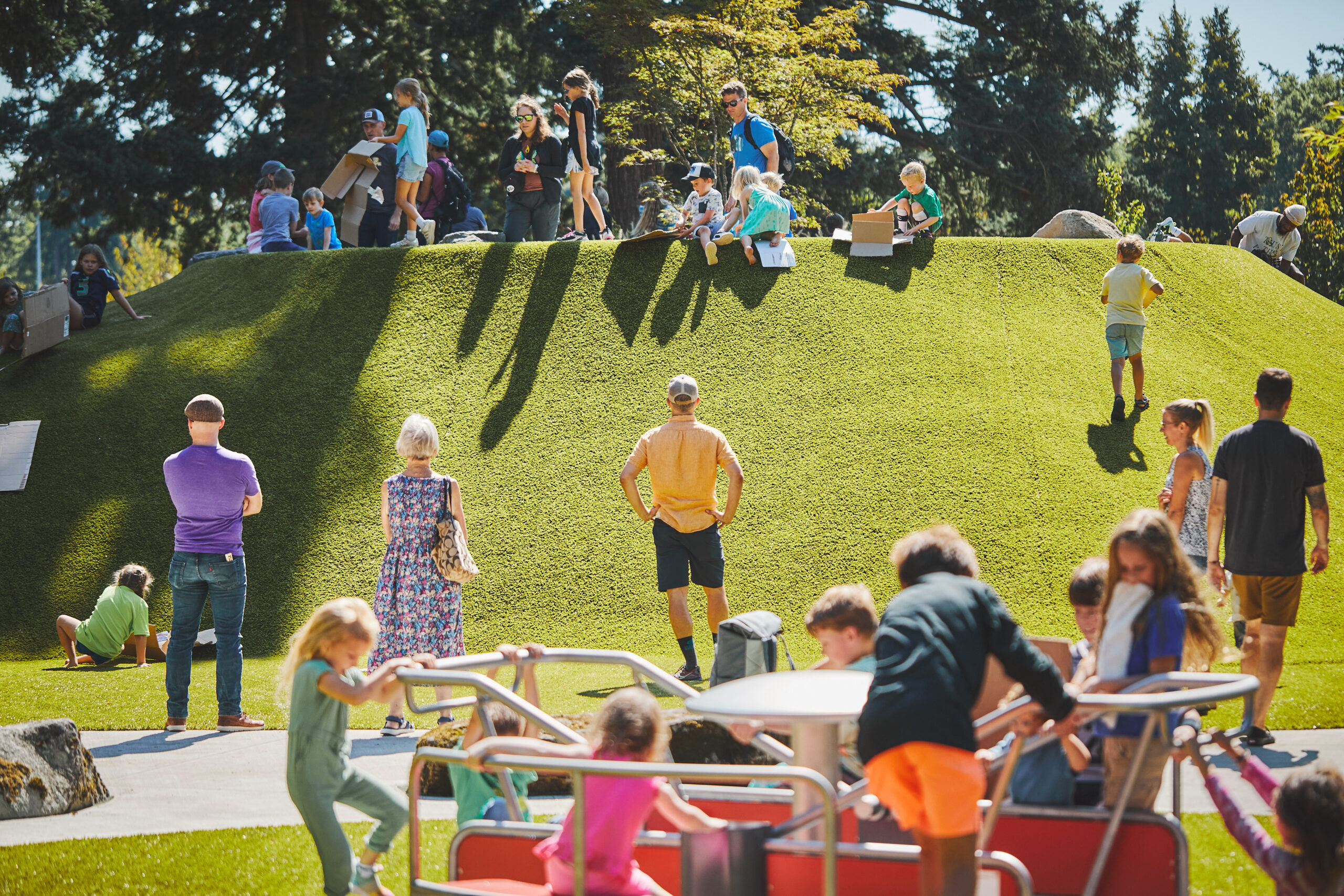 A really central feature for Harper’s playground is what we call Harper’s Hill, because it’s not only beautiful and elegant, but it’s very usable in many ways, has many play affordances.