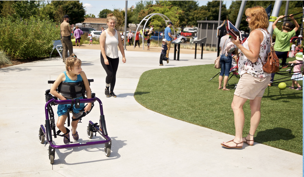The inclusive playground to us is a key part of all that. (Janet: right). I mean, it’s a big one, but not by itself. It’s pretty critical that it be part of a broader system. (Janet: right). Not just of a broader park (Janet: no), but system of interconnected parks, and neighborhoods. (Janet: yeah). So that kids, as we’ve talked about earlier, can get from their home to the park safely. On their own. That’s critical as well.