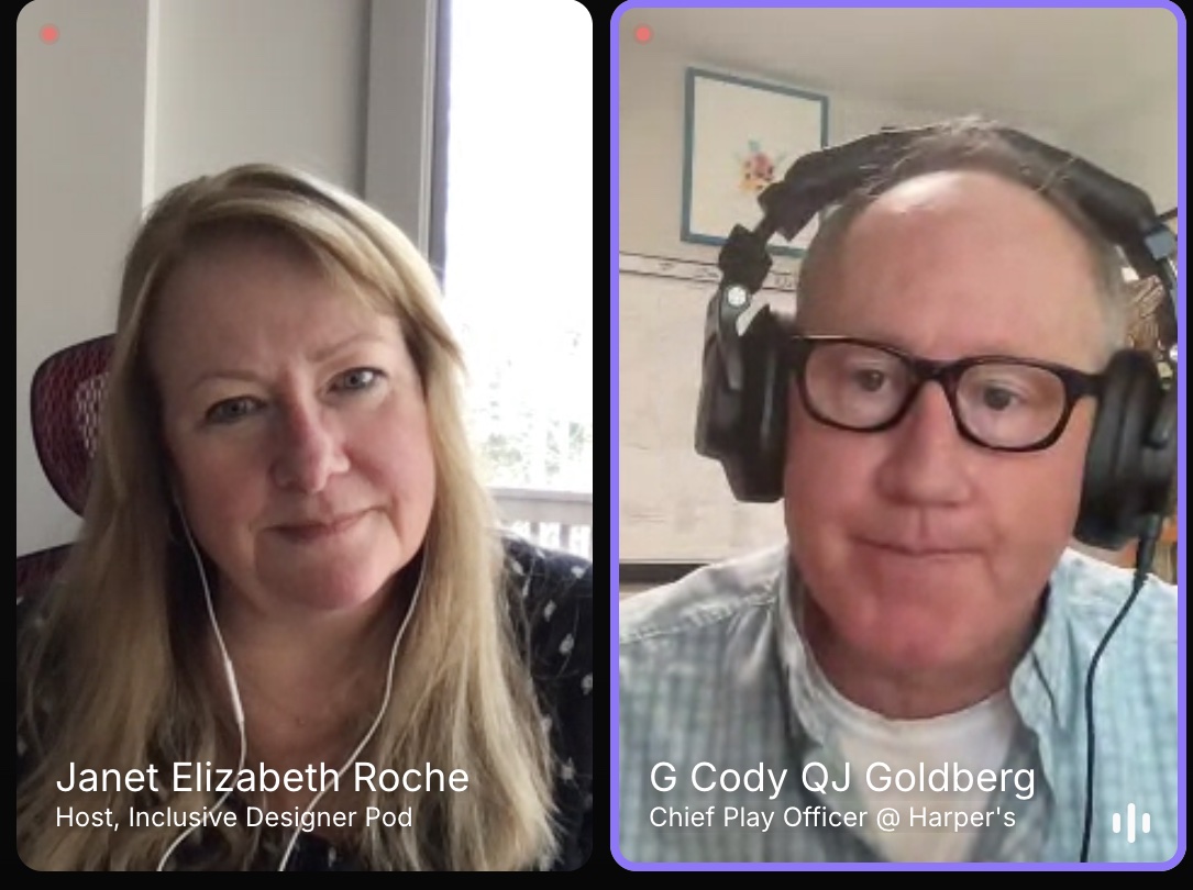Janet: Right. That’s really lovely. Alright, Chief Play Officer Cody Goldberg from Harper’s, thank you so much for being here today and sharing your wisdom. And we will put all the information on our website, InclusiveDesigners.com. And we will hopefully have you back at some point and talk a little bit more about different types of things on the inclusion spectrum of different areas.